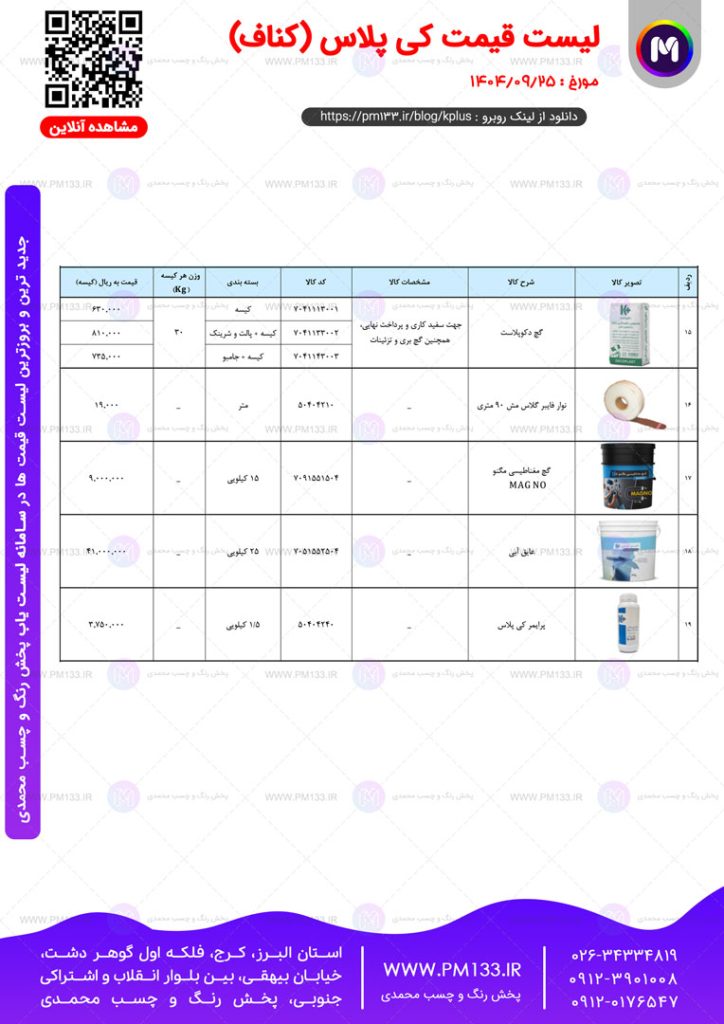 لیست قیمت ابزارلیست قیمت بروز محصولات کی پلاس