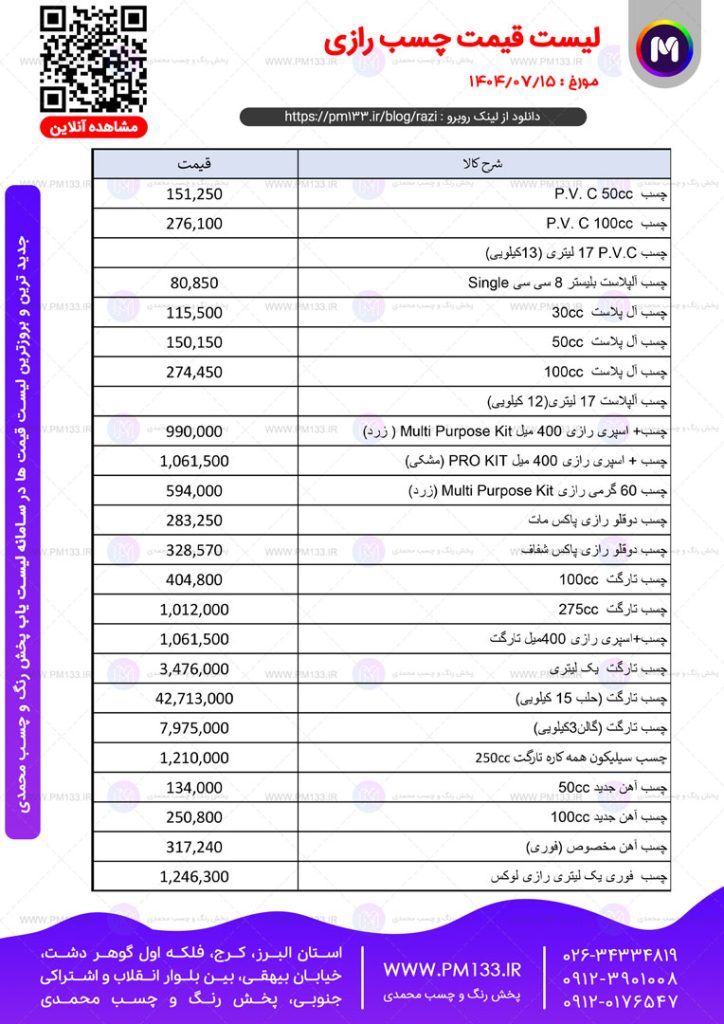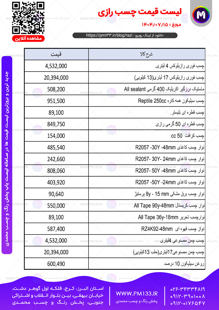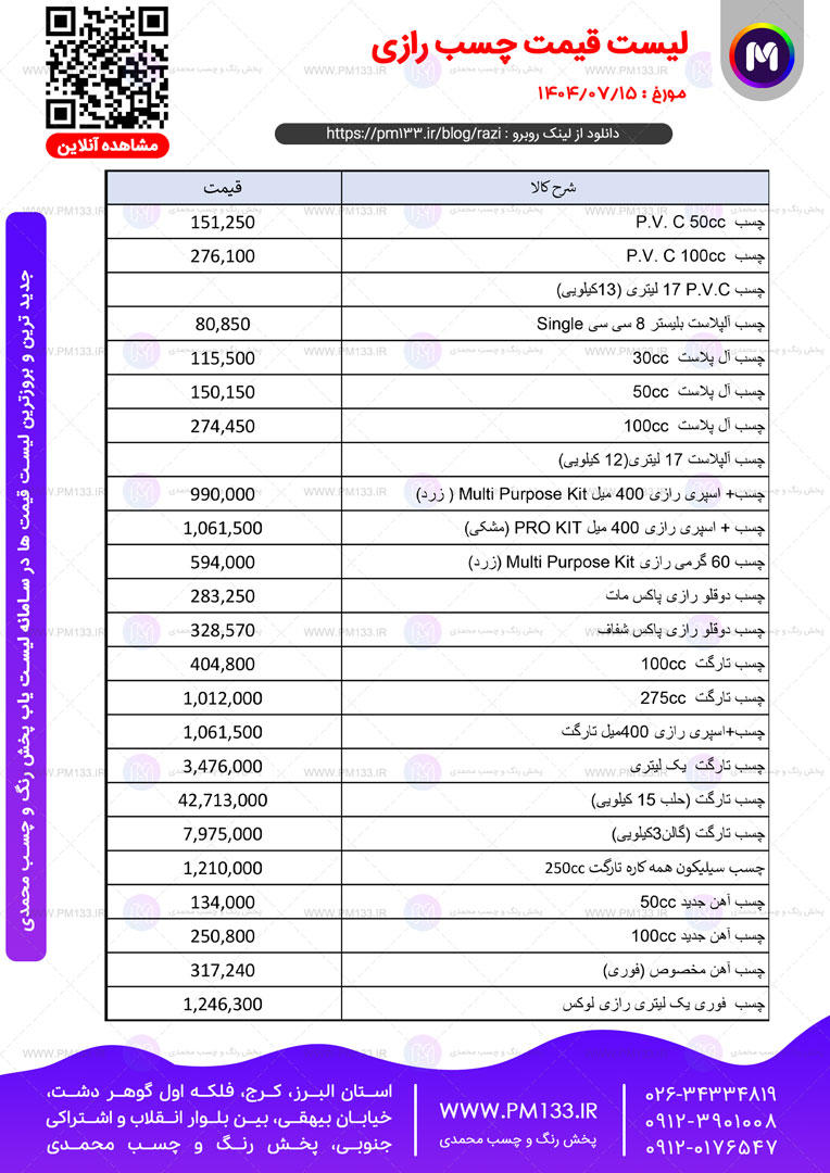 لیست قیمت چسبلیست قیمت بروز محصولات چسب رازی