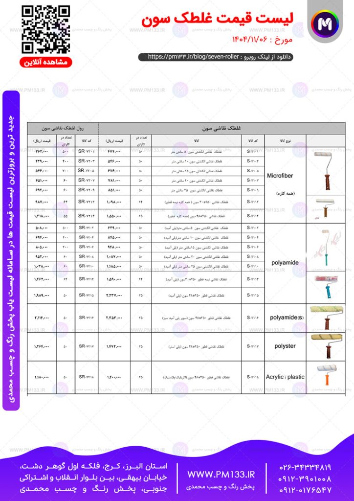لیست قیمت ابزارلیست قیمت بروز محصولات غلطک رنگ سون